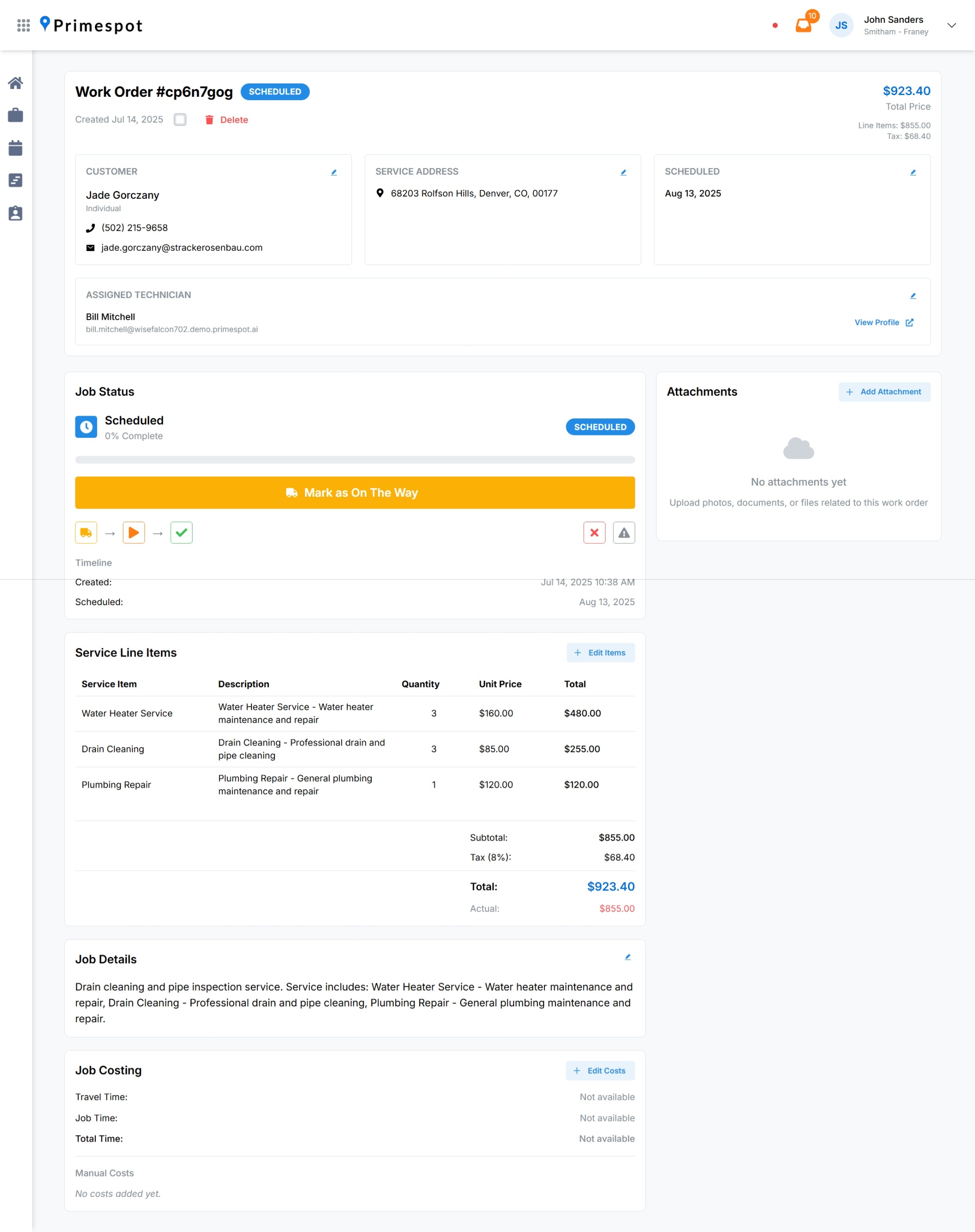 Create, track, and manage work orders with detailed job information, photos, and customer notes.